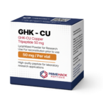 GHK-Cu 50 mg es un péptido de alta pureza diseñado para aplicaciones de investigación científica en laboratorio. Se presenta en forma de polvo liofilizado, lo que permite una mayor estabilidad del compuesto antes de su reconstitución.